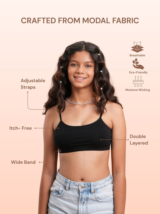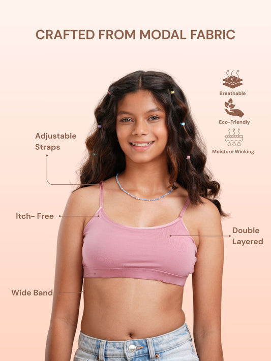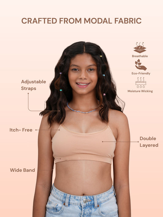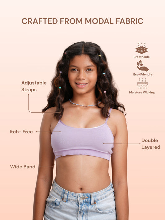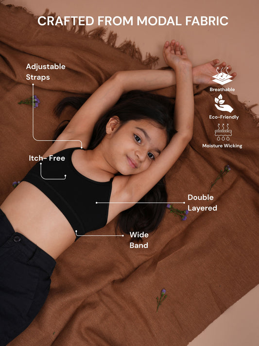 Made with ultra-soft modal fabric, our bras feel like a second skin. Breathable, smooth, and gentle on sensitive skin — perfect for growing bodies that need all-day comfort and care.