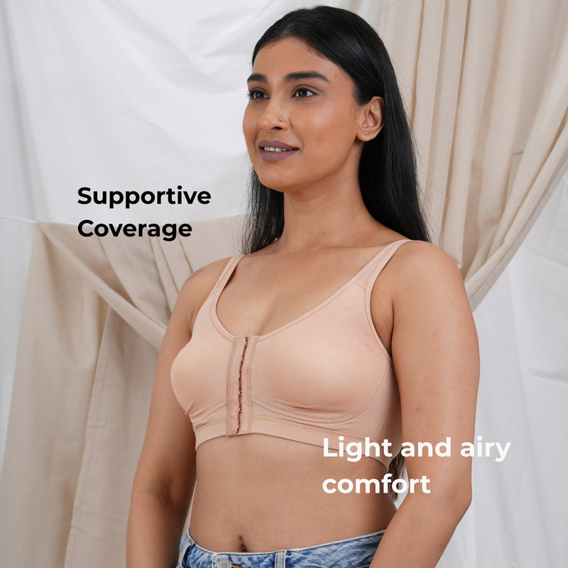 Front Open Non Padded Wire-Free Comfort Diva Bra - Caramel