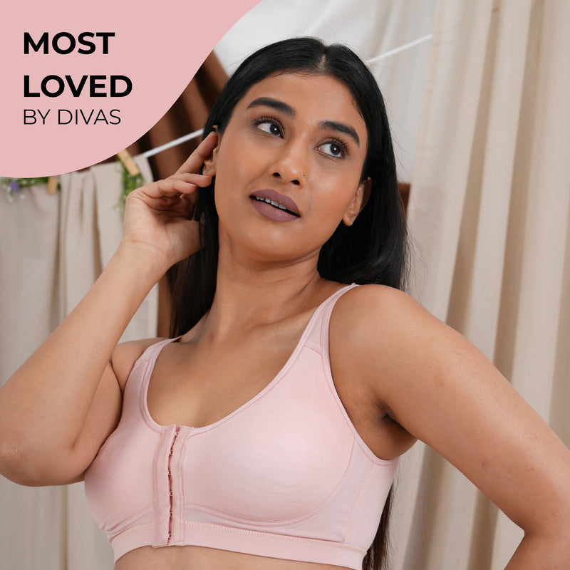 Front Open Non Padded Wire-Free Comfort Diva Bra - Pink