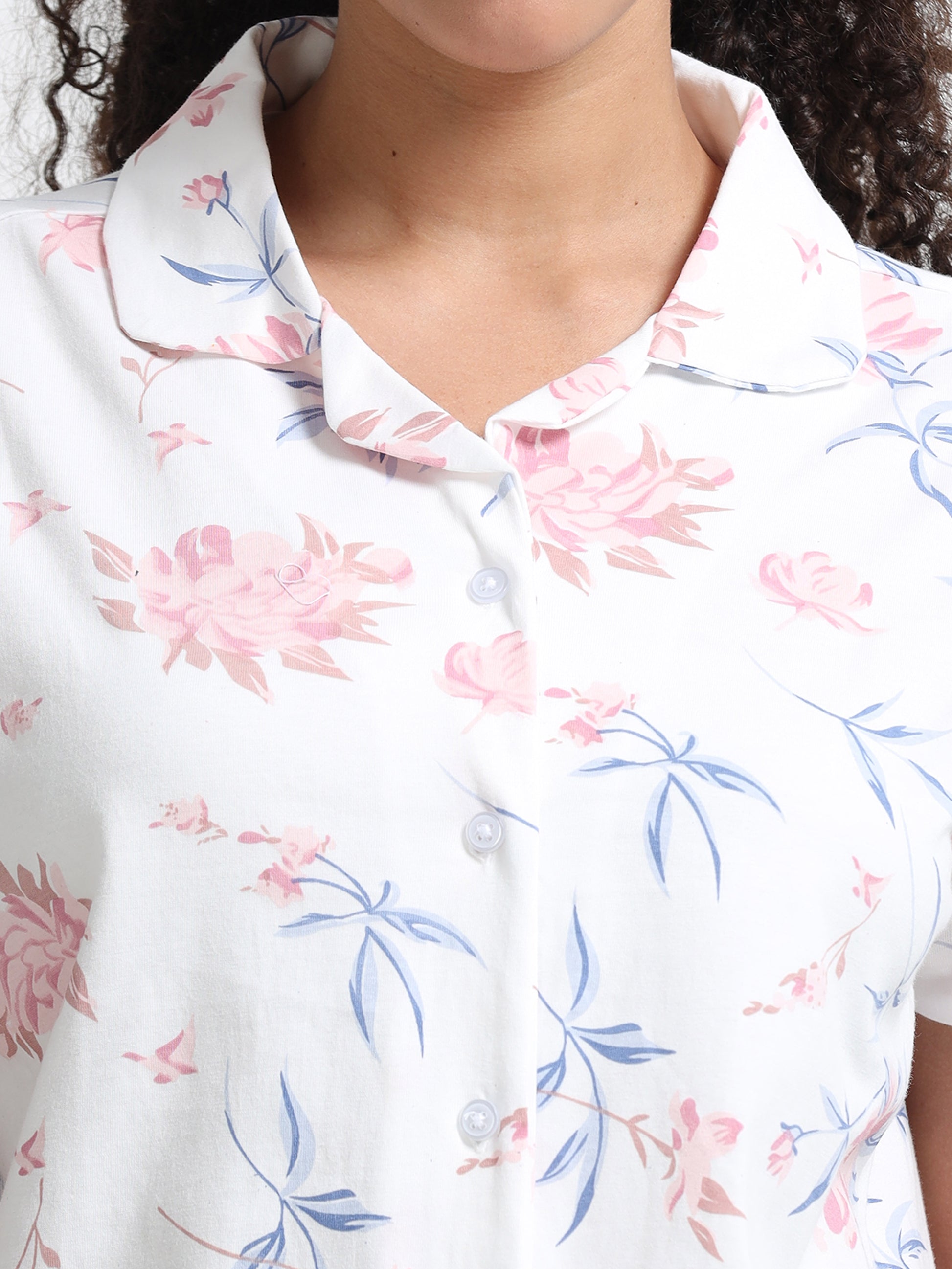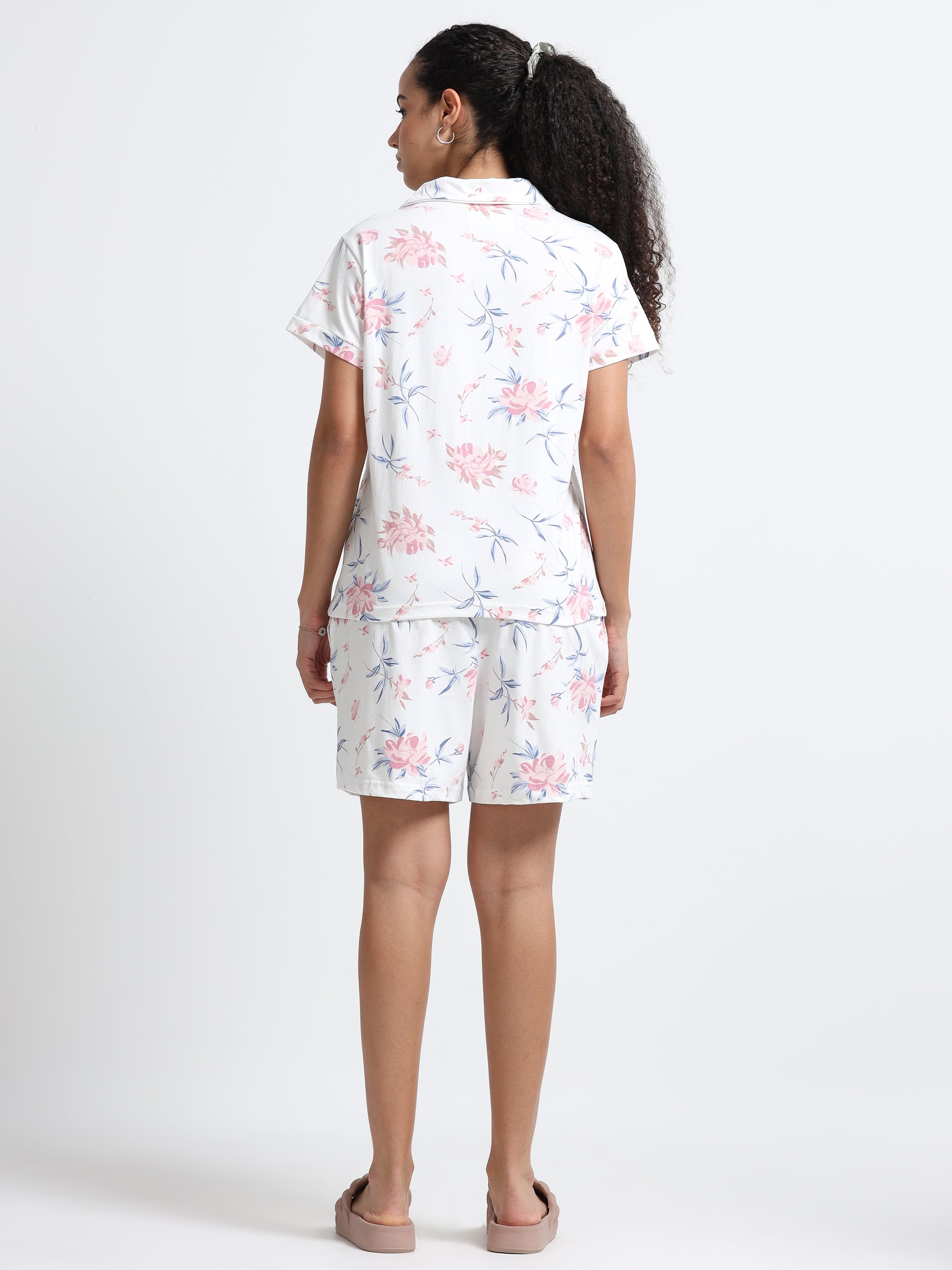 Relax in comfort and style with this soft cotton pyjama set. Designed for the ultimate ease, this set features a half-sleeve top with a sleek Cuban collar and matching shorts for a light, breathable fit perfect for warmer nights.
