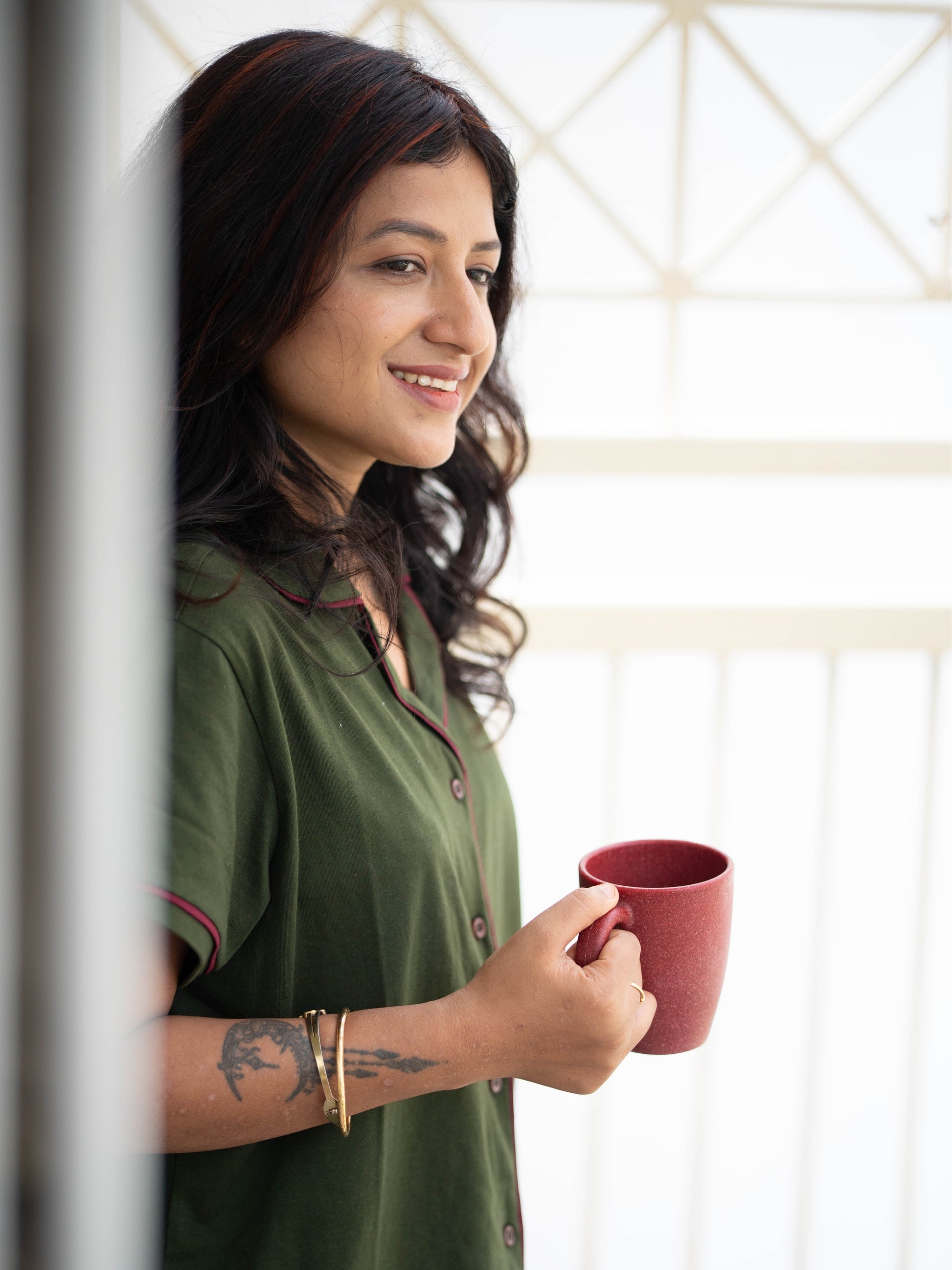 Unwind in ultimate comfort with this soft, breathable cotton pyjama set, designed to offer you a relaxed fit and a peaceful night’s sleep. Featuring a stylish Cuban collar and a classic half-sleeve top, this set is perfect for lounging or restful nights.